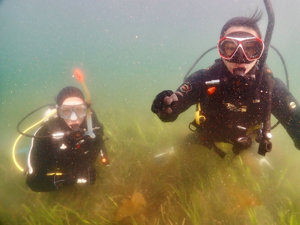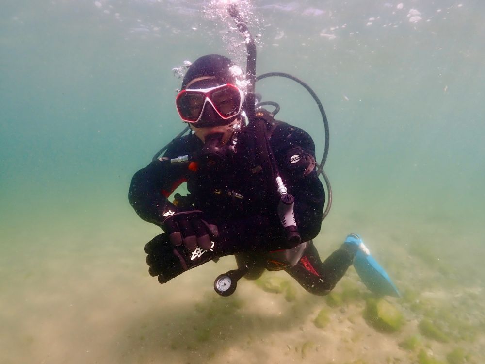 - ダイビングは年間を通して楽しむことができるスポーツです。当店では、ドライスーツという服の上から着ることができる、体が水に濡れないスーツもレンタルとして用意していますので冬期でも受講が可能です。