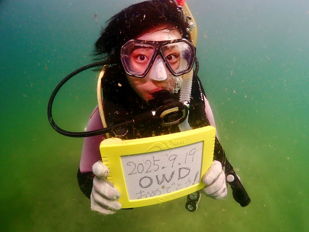 2025.9.16-19☆4日間連続オープンウォーターダイバーコース開催☆日記 連日オープンウォーターダイバーコース開催です。【気温28℃・水温26℃・透明度3~8m】連日で大変でしたが、よく頑張ってダイビングスキルを習得して頂きました。最終日の講習でオープンウォーターダイバー認定となったゲスト様。苦手だったマスクスキルも上手になりました。認定おめでとうございます。 ~ダイビングツアーのご案内~☆ 9月26日(金)~28日(日)柏島ツアー☆ 10月3日(金)~5日(日)宿毛花火大会柏島ツアー☆ 10月7日(火)大田ツアー☆ 10月11日(土)大田ツアー☆ 10月12日(日)大田ツアー☆ 10月13日(月)倉橋ツアー☆ 10月14日(火)~16日(木)平日柏島ツアー☆ 10月17日(金)~19日(日)柏島ツアー☆ 10月23日(木)~26日(日)沖縄西表島ツアー ※ご希望の日にリクエストツアー受付中ご予約は下記までお気軽にお問合せ下さい。MAIL info@sealoop.jpTEL 082-879-1778URL https://www.sealoop.jp/
