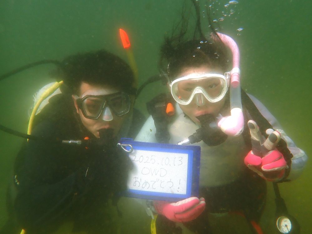 2025.10.13☆親子でダイバー認定おめでとうございます☆日記 オープンウォーターダイバーコース最終日です。【気温28℃・水温23℃・透明度5m】日本海での講習を予定していましたが波が高いので瀬戸内へ。久々の坂でダイビング。透明度は悪かったですが、ご参加頂いたゲスト様、ウミウシやナベカなどを見て楽しみました。落ち着いていてすべての講習終了です。次回は透明度のいい海で楽しみましょう♪認定おめでとうございます(^^) ~ダイビングツアーのご案内~☆ 10月17日(金)~19日(日)柏島ツアー☆ 10月23日(木)~26日(日)沖縄西表島ツアー☆ 10月21日(火)大田ツアー☆ 10月28日(火)大田ツアー☆ 11月1日(土)~3日(月)柏島ツアー☆ 11月8日(土)大田ツアー☆ 11月9日(日)大田ツアー☆ 11月15日(土)~16日(日)愛南ツアー☆ 11月22日(土)~24日(月)柏島ツアー ※ご希望の日にリクエストツアー受付中ご予約は下記までお気軽にお問合せ下さい。MAIL info@sealoop.jpTEL 082-879-1778URL https://www.sealoop.jp/