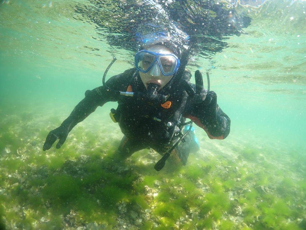 初めてのダイビングに挑戦です。ドキドキのダイビング。ちょっぴり海水を飲んじゃうハプニングもありましたが、それも含めて大切な経験。最後はしっかり海中世界を楽しんで頂けました。