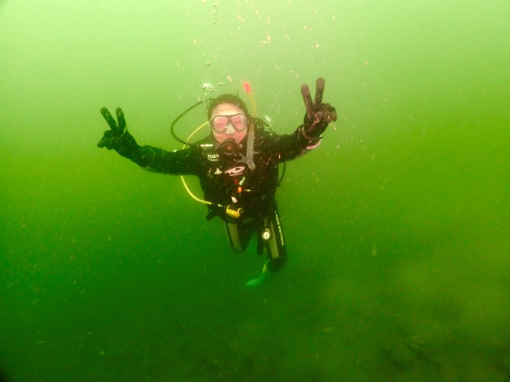 天気が良くて、ドライスーツを着ると暑いぐらいでした。ご参加頂いたゲスト様スキルもばっちり。初めて水深15mまでいくことが出来ました。浮力コントロールも上手になってきましたね!深場は透明度がイマイチですが、落ち着いてダイビング出来ました。エキジット手前では水面でムラソイ幼魚を見ることも出来ました♪