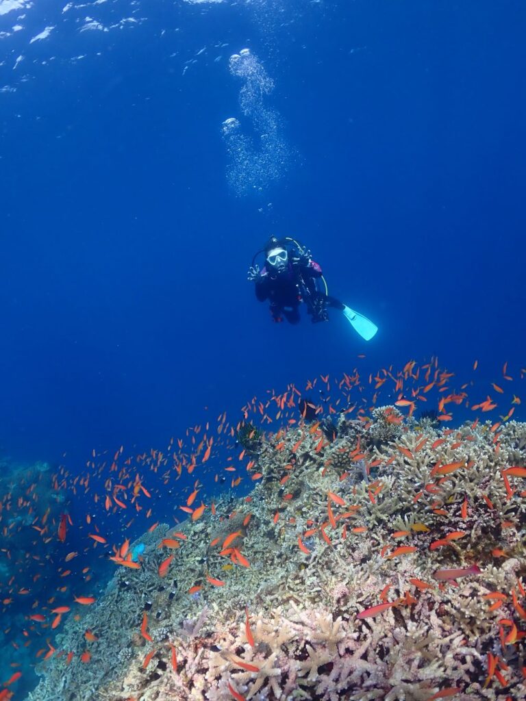 透明度は25〜30mと抜群で、サンゴ礁の美しさが一層際立つ最高のコンディション。