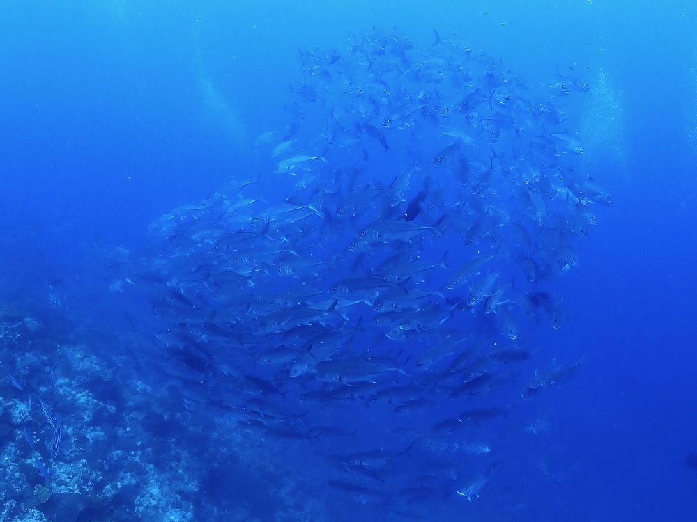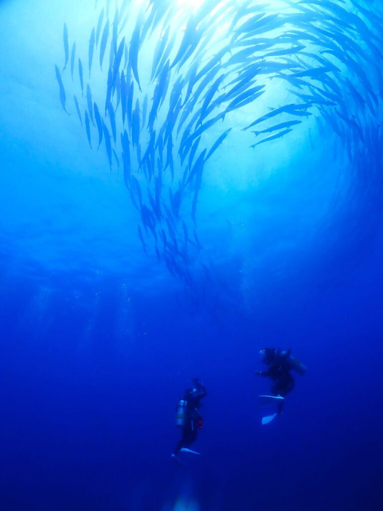 さらに、海の中ではギンガメアジの大群、そして圧巻のバラクーダトルネードも登場。